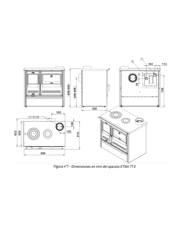 El seu forn és d’alta capacitat, amb recobriment esmaltat per a una cocció uniforme. Incorpora sistemes de regulació d’aire que permeten controlar la intensitat del foc i optimitzar el consum de llenya. A més, està equipada amb aïllaments tèrmics i sortida de fums superior o posterior per adaptar-se a cada instal·lació. Estèticament, combina un toc industrial amb un acabat acurat que s’adapta tant a interiors clàssics com moderns. La Etna és ideal per aquells que volen una cuina potent, elegant i amb personalitat.