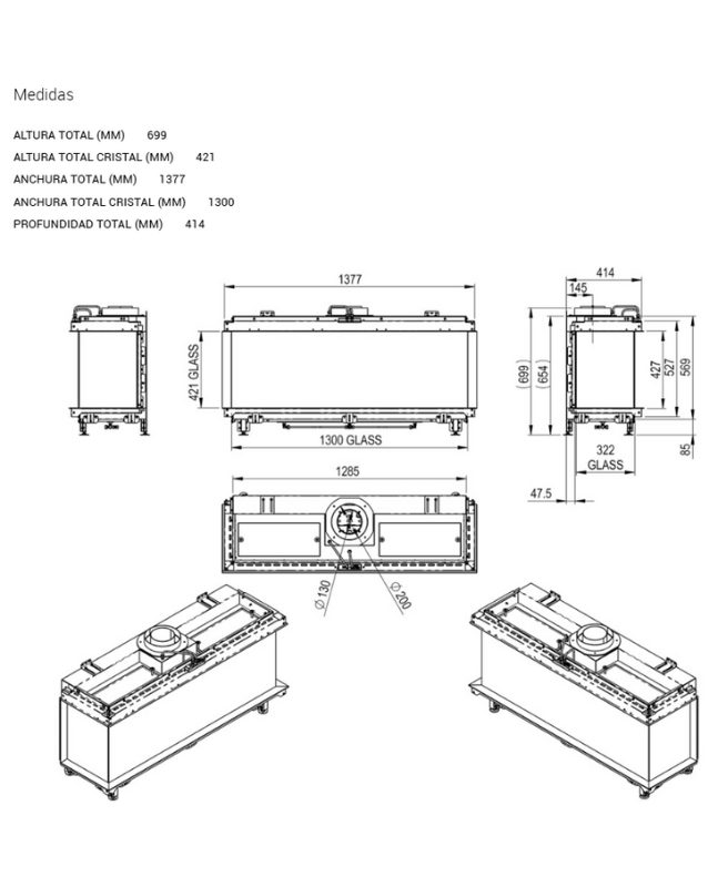 Dimensions De 650 a 1300 mm (ample total aproximat)