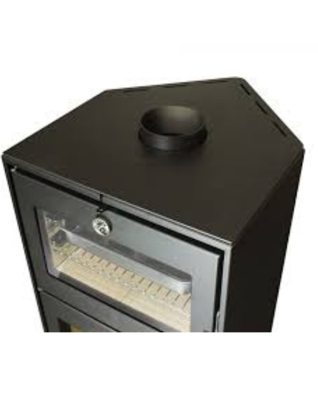Una de les grans particularitats d’aquest model és el seu forn superior en acer inoxidable, equipat amb bandeja i reixa metàl·lica, que permet preparar plats aprofitant la calor generada pel foc. Això converteix l’ALTEA en una opció ideal per als amants de la cuina tradicional i sostenible, ja que permet cuinar pa, guisats o rostits amb l’aroma autèntica del foc de llenya.