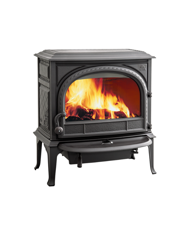La Jøtul F 400 Eco SE és una estufa de llenya de ferro colat d’alta eficiència, amb una potència nominal de 7 kW i una eficiència del 83%. Disposa d’un gran vidre frontal per gaudir de la vista del foc i una capacitat per a troncs de fins a 50 cm. La seva tecnologia de combustió neta i estanca redueix les emissions i permet una instal·lació amb aire exterior.