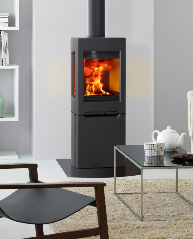 El seu compartiment d’emmagatzematge inferior tancat resulta molt pràctic per guardar-hi estris o petites quantitats de llenya. A més, pot connectar-se a una entrada d’aire exterior, la qual cosa la fa compatible amb habitatges passius o amb alta eficiència energètica.
