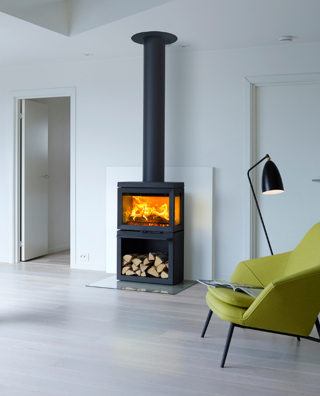 A més, la base de l’estufa incorpora un espai pràctic d’emmagatzematge per a llenya , optimitzant així l’ús de l’espai i facilitant l’accés als troncs.