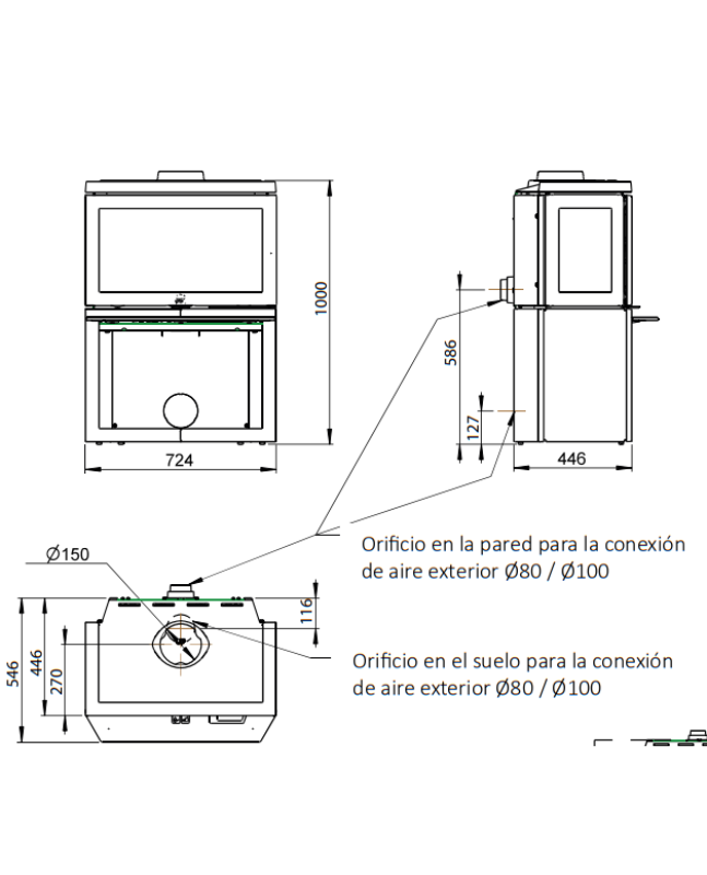 Amb un estil robust i atemporal, aquesta estufa és ideal per a cases de disseny rústic o modern, i encaixa perfectament en salons amplis, salons de casa o fins i tot a cotes més obertes com menjadors i sales d’estar. A més, el seu sistema de calefacció a base de llenya la fa una opció ecològica i sostenible, mantenint els costos energètics baixos mentre proporciona una calor agradable durant els mesos freds.