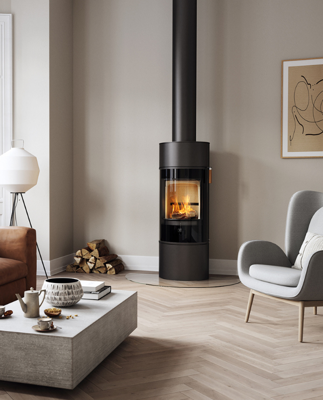 La Scan 84 Modern és una estufa de llenya pensada per a aquells que valoren tant l’eficiència tèrmica com el disseny d’autor. La seva forma rectangular i sòbria, unida a una gran porta de vidre negre amb vores serigrafiades, la converteixen en una peça arquitectònica perfecta per a espais moderns, minimalistes o d’inspiració escandinava. Aquesta estufa és una expressió clara del disseny danès contemporani: funcional, net i visualment impactant.