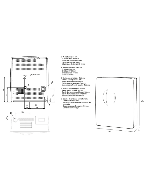 • Disponible versió amb sortida concèntrica (UP Ø130/80 mm)