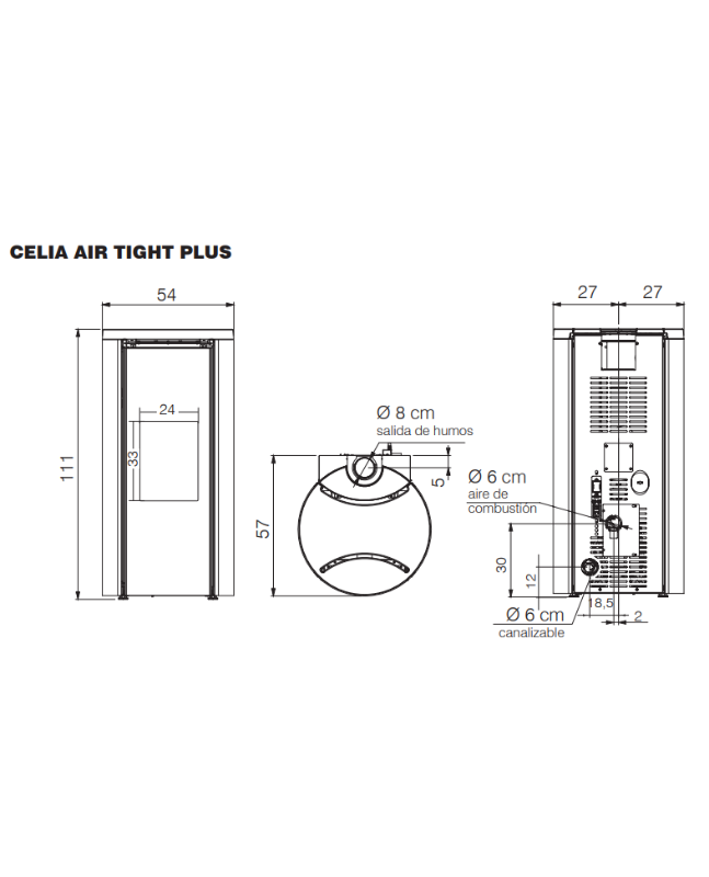 Amb un disseny refinat i minimalista, la Celia Air Tight Plus s’integra a qualsevol ambient, aportant una presència elegant gràcies als seus acabats en acer o vidre en tonalitats modernes com el blanc o el negre. La seva porta frontal de vidre permet gaudir d’una visió nítida de la flama, creant una atmosfera càlida i acollidora.