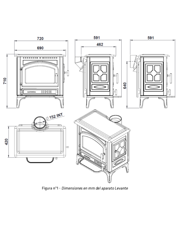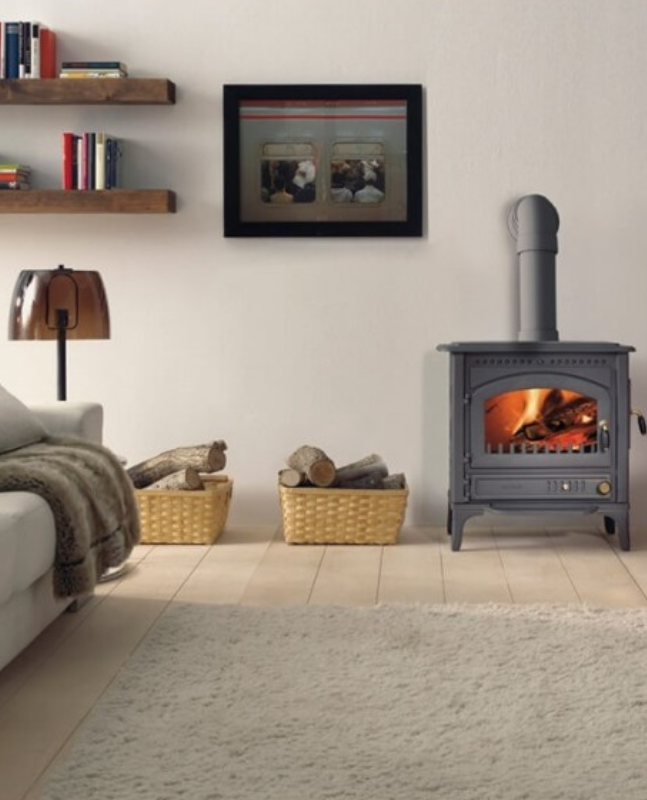 La Levante és una estufa de línies verticals i disseny estilitzat, pensada per aprofitar al màxim l’espai i escalfar amb eficàcia. És una opció ideal per a racons estrets, amb una gran visibilitat del foc i una eficiència energètica elevada.