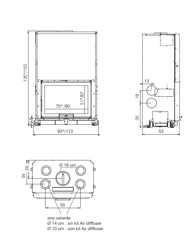 Sortida de fums: Ø 18 cm, sortida superior de tipus femella.
