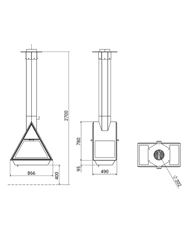 La Equil és una xemeneia metàl·lica amb un disseny contemporani i geomètric que aporta una gran presència arquitectònica a qualsevol espai. Amb formes piramidals i línies netes, convida a gaudir del foc com a element central i escultòric. Està disponible en dues variants: