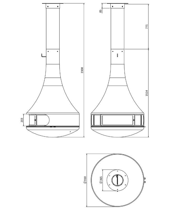 La Hipnosi és una xemeneia central de disseny impactant, amb línies suaus que evoquen elegància i contemplació. S’introdueix com a peça central en interiors acollidors, oferint una visió atractiva del foc des de tots els angles. Està disponible en dues versions: