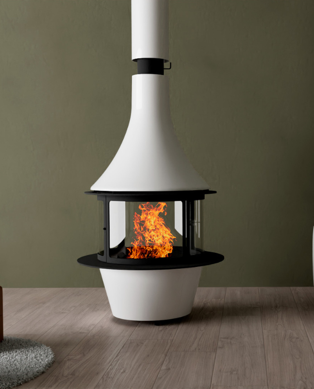 La gamma Lorena s’identifica pel seu format cilíndric amb gran superfície de vidre, que crea un impacte visual contundent i sofisticat. Tant la versió encara suspesa com la encastada ofereixen una gran experiència visual amb funció tèrmica eficient. Fabricada en acer de qualitat amb pintura resistent a altes temperatures i amb opcions de posterior personalització en colors RAL.