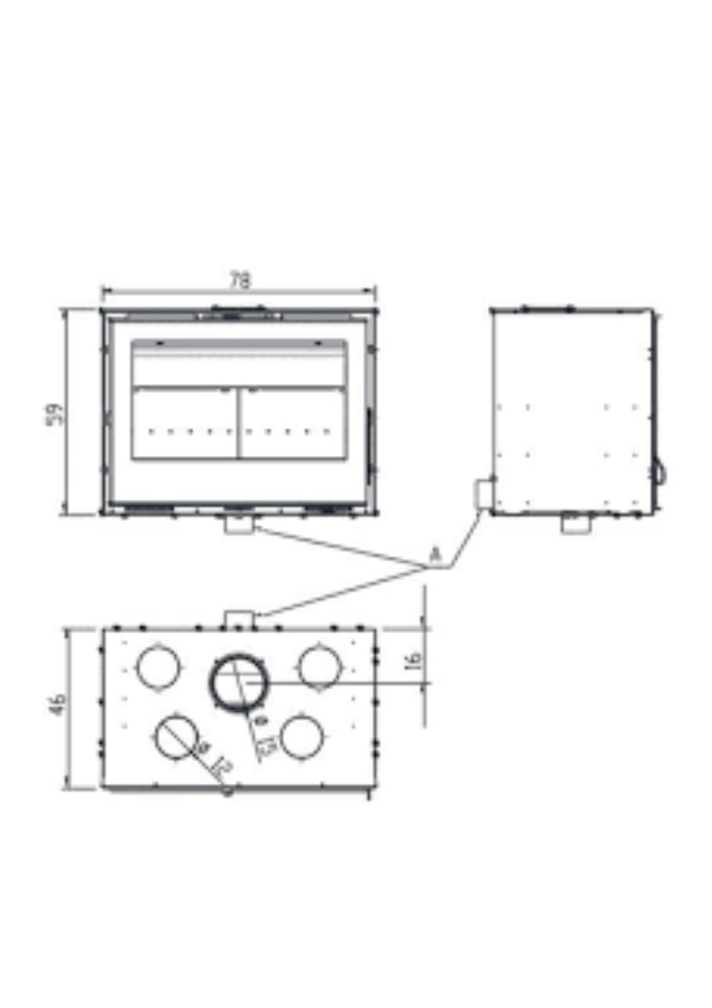 Aquest model compta amb sortida de fums de 150 mm i ventilació frontal de sèrie (modulable en dues potències o automàtica) que permet una distribució òptima de l’aire calent a l’habitació.