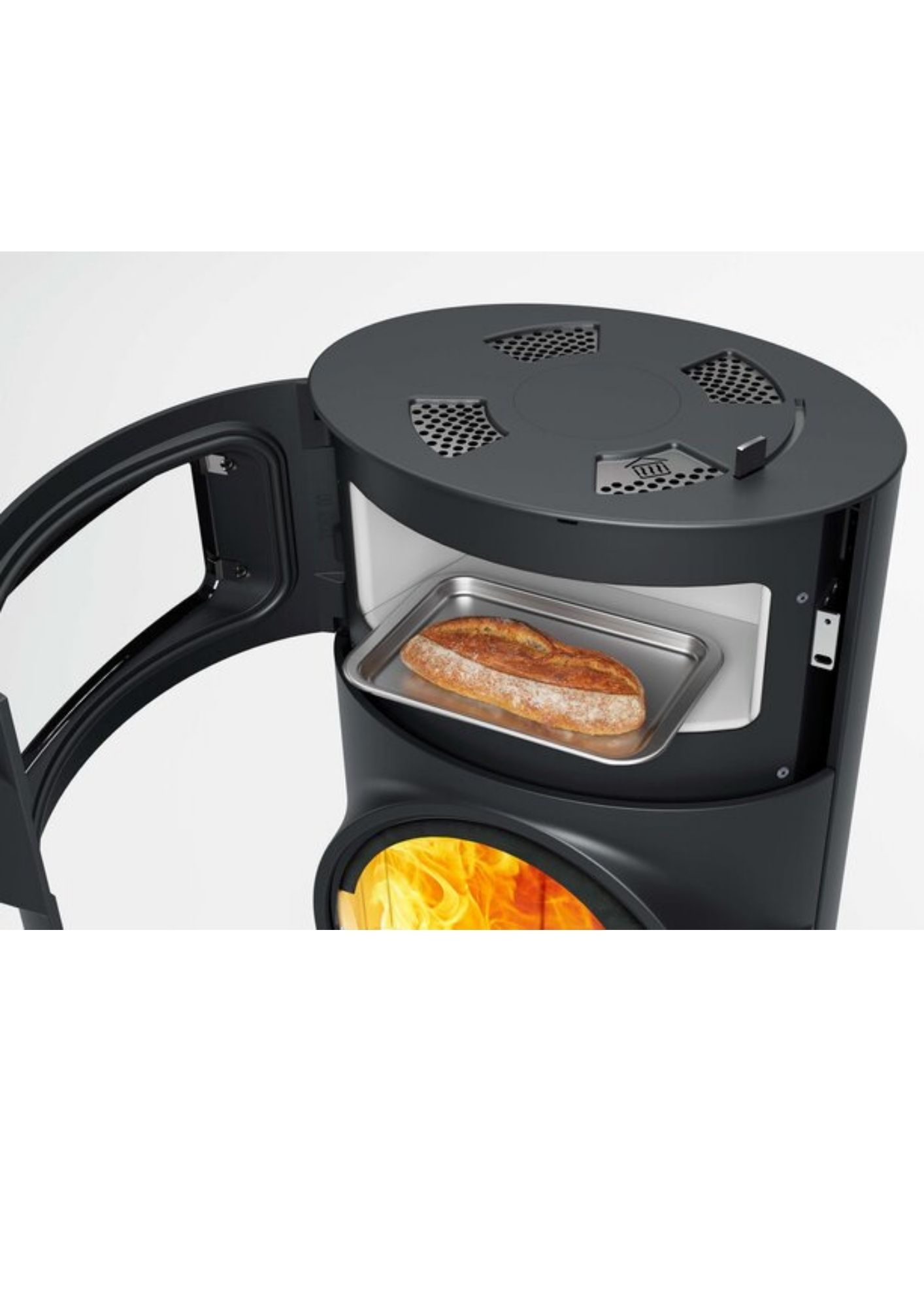 El seu element distintiu és el forn posterior Xtra Back, ubicat darrere i lleugerament per damunt de la cambra de combustió. Aquest forn opera mitjançant cocció indirecta, utilitzant la calor residual acumulada en el circuit tèrmic intern i en el massís d’acumulació del sistema Xtra. El compartiment presenta una construcció robusta en acer tractat i porta amb vidre temperat resistent, permetent la cocció lenta, escalfament d’aliments i manteniment de temperatura sense consum addicional de combustible.