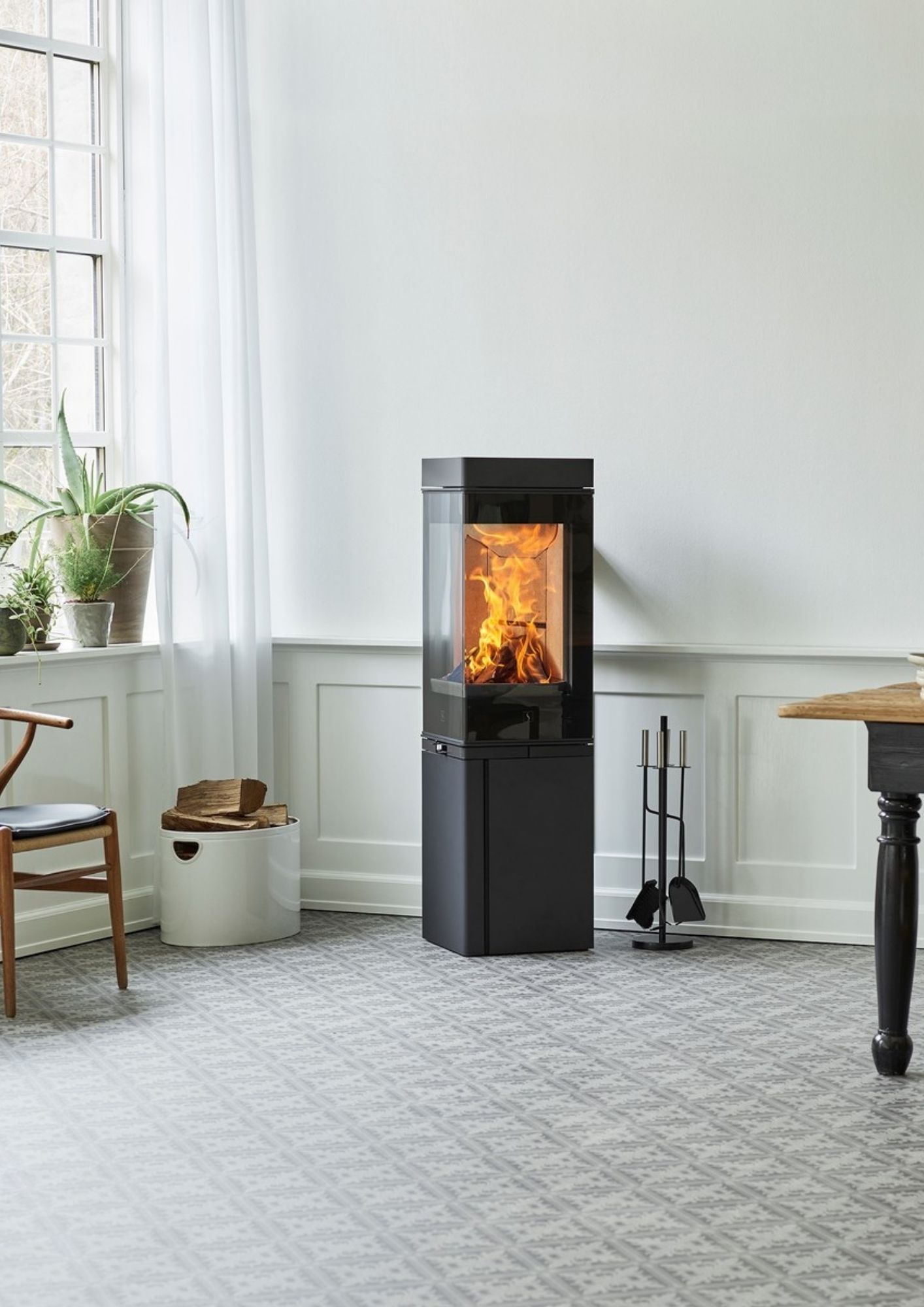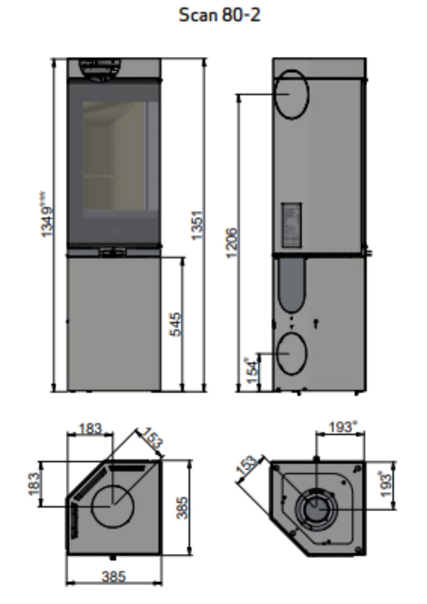 La SCAN 80-2 és una estufa de combustió tancada de geometria vertical, construïda amb carcassa d’acer reforçat i revestiment tèrmic intern. Presenta una potència nominal entorn dels 6 kW i una cambra de combustió de gran amplada visual, protegida per vidre ceràmic resistent a altes temperatures. El seu disseny assegura un rendiment elevat i una distribució homogènia de la calor.
