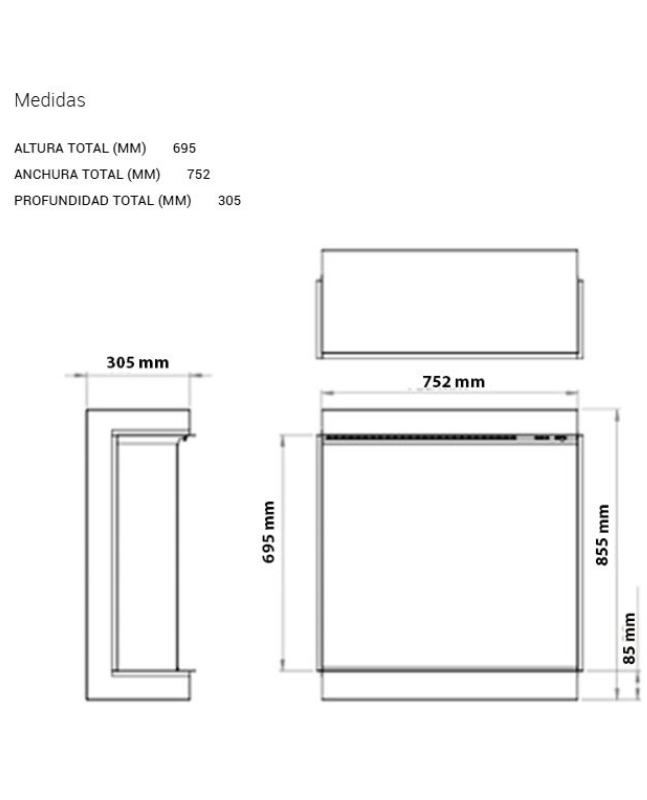 La xemeneia elèctrica I750E és un model compacte i elegant de xemeneia elèctrica, dissenyat per optimitzar l’espai sense renunciar a un efecte visual impressionant. Forma part de la gamma I-RANGE, que ofereix diverses opcions de mides i personalització. Destaca pel seu realisme a les flames, que poden ajustar-se en color (ambre, blanc o combinació) i brillantor, permetent crear diferents ambients segons l’estat d’ànim. A més, es poden triar entre 9 colors per al llit de combustible i afegir llums LED ambient, totes controlades per un comandament a distància.