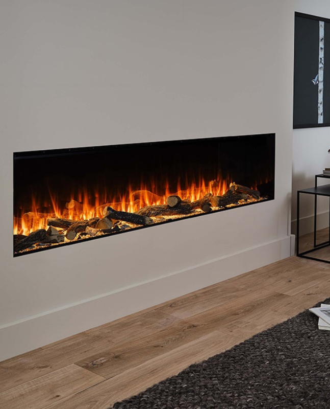 El foc elèctric NEW FOREST 1900 aporta una nova perspectiva a la gamma de xemeneies empotrades. premiades, ofereix una experiència visual impressionant. A més, inclou els nostres registres d’alta qualitat, amb l’opció de millorar l’aparença amb els Deluxe Real Logs, brindant un toc d’autenticitat i sofisticació.
