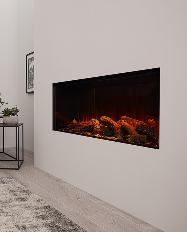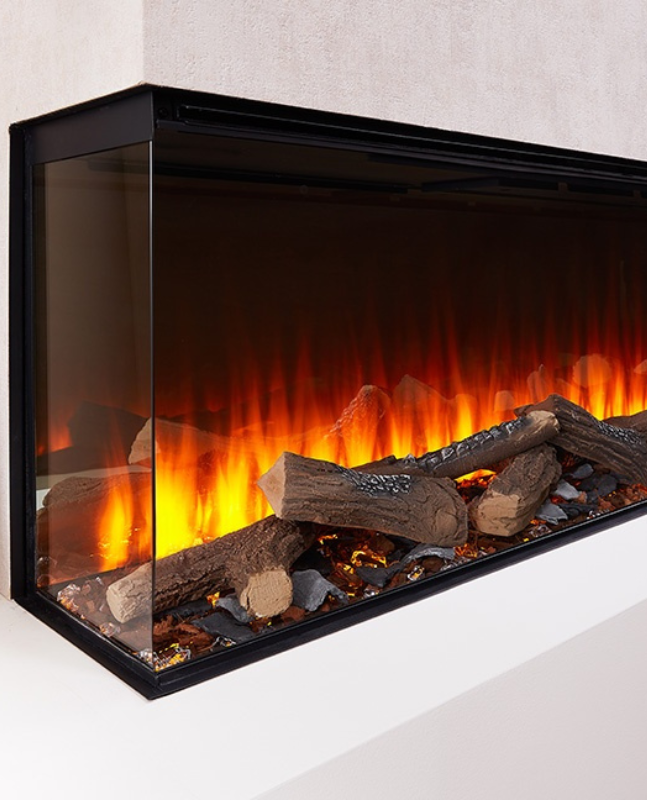 El foc elèctric NEW FOREST 1200 aporta una nova perspectiva a la gamma de xemeneies empotrades. premiades, ofereix una experiència visual impressionant. A més, inclou els nostres registres d’alta qualitat, amb l’opció de millorar l’aparença amb els Deluxe Real Logs, brindant un toc d’autenticitat i sofisticació.
